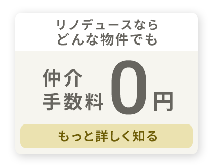 リノデュースは、この煩わしさをなくすために"ワンストップサービス"をご提供。加えて、どんな物件を購入しても仲介手数料が一切かからないのは、リノデュースだけの強みです。