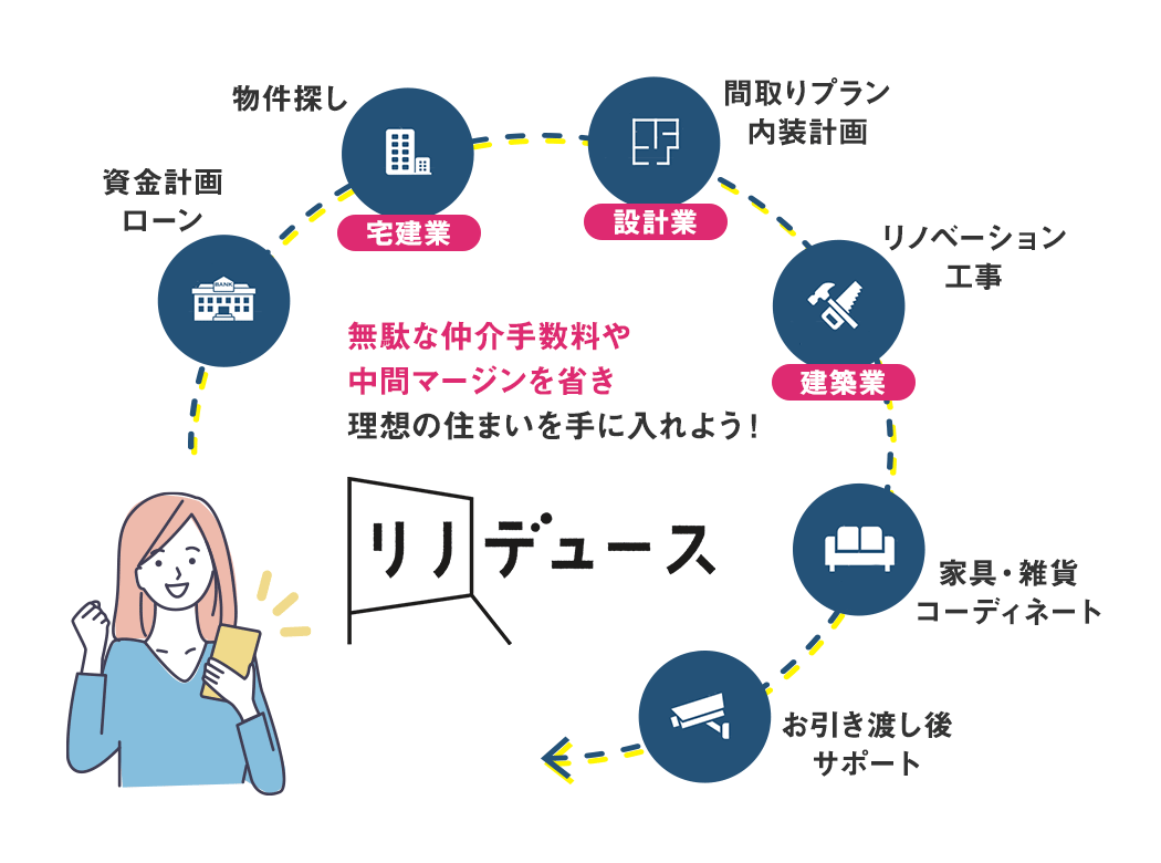 少しでもお客様に費用を還元し、その分満足のいく住まいを手に入れて欲しいというリノデュースの想いです。